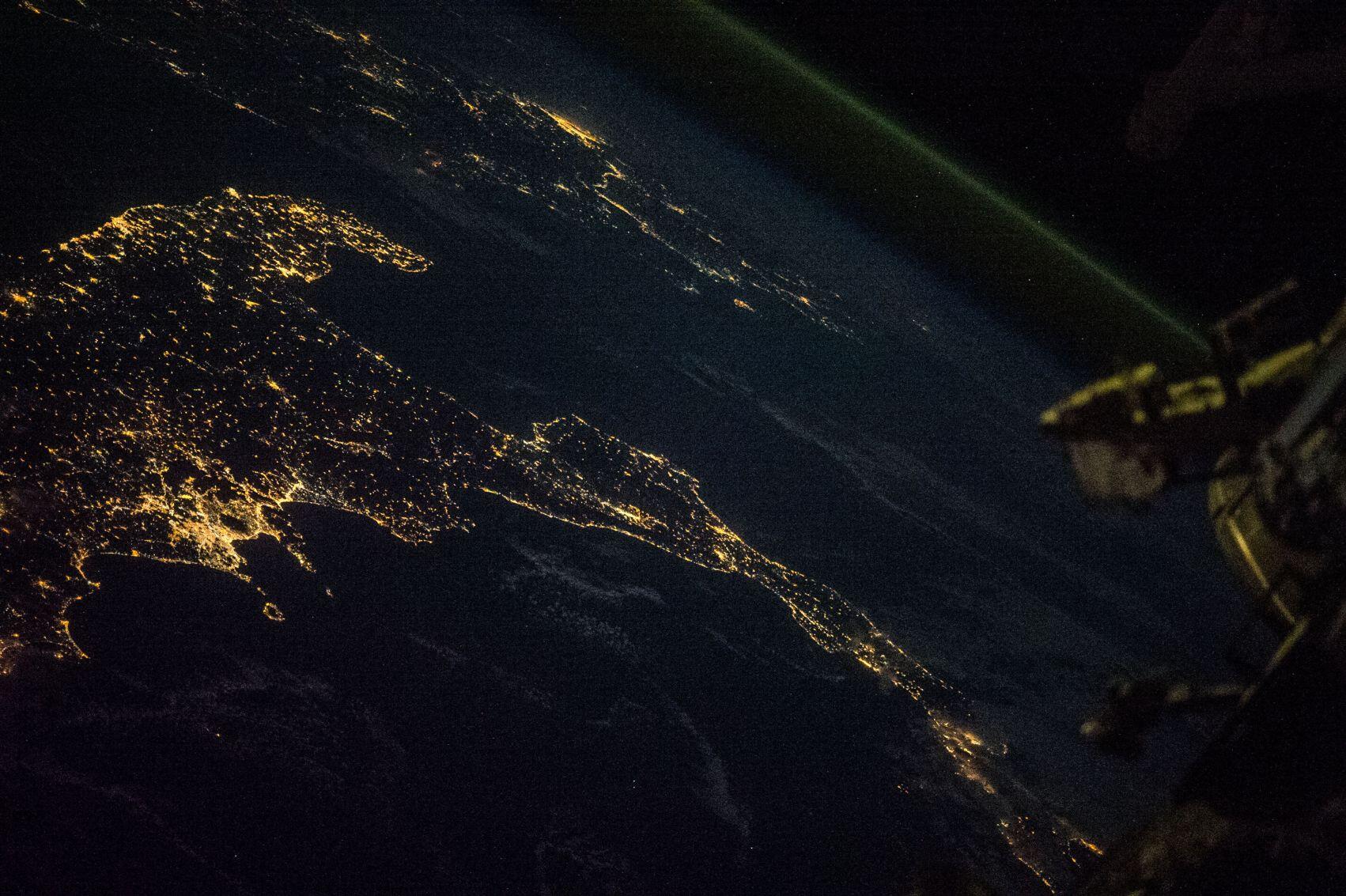 Ma c'è anche il moderno: sull'estrema destra possiamo vedere componenti della Stazione Spaziale Internazionale, da dove sono state scattate queste stupende immagini. Una grande opera dell'uomo nella quale il nostro paese è in prima linea per la sua costruzione, con molti moduli e parti realizzate proprio in Italia!