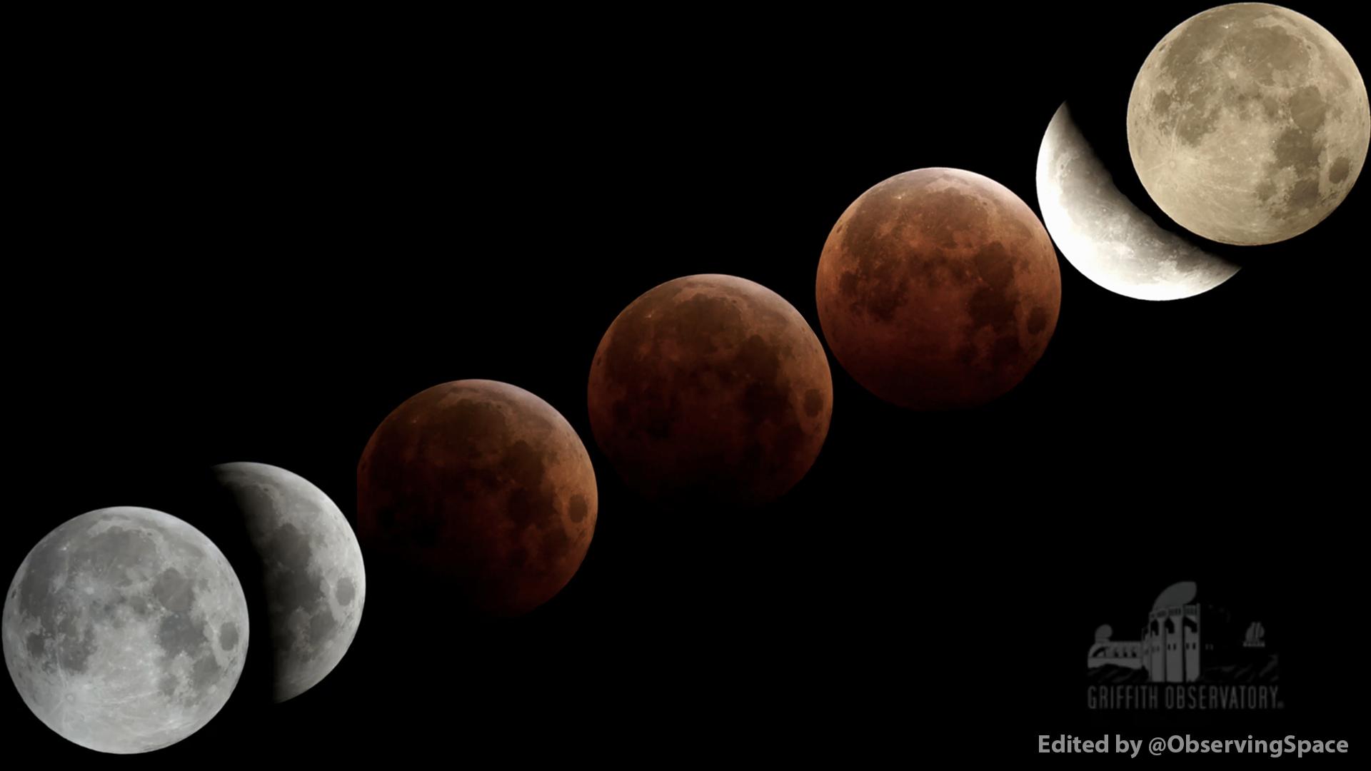 L'eclisse vista in questa immagine composita, presa dal Live Feed del Griffith Observatory in California